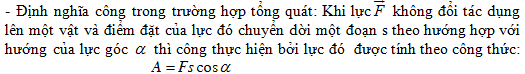 Định nghĩa công trong trường hợp tổng quát. Viết biểu thức?