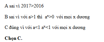 Cho hai số thực a,b với 1<a<b. Khẳng định nào sau đây là đúng: