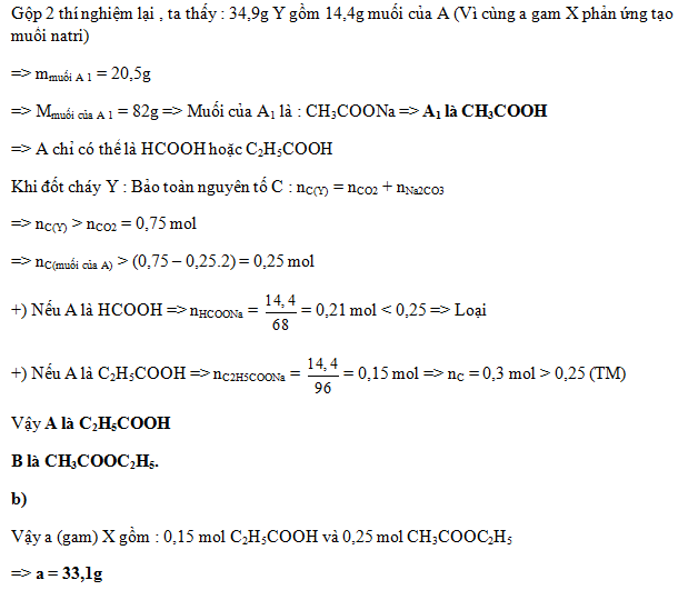 Thí nghiệm 2: Cho a gam hỗn hợp X tác dụng với dung dịch NaOH (vừa đủ)