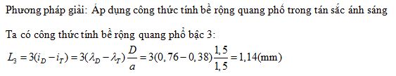 Trong thí nghiệm của Young có a=1,5mm; D=1,5m. Khe S được chiếu bởi ánh sang trắng có bước sóng từ 0,38μm đến 0,76μm. Bề rộng dải quang phổ bậc 3 ở trên màn: