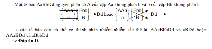 Tế bào ban đầu có 3 cặp nhiễm sắc thể tương đồng kí hiệu là AaBbDd thực hiện quá trình nguyên phân. Giả sử một NST A của cặp Aa và một NST b của cặp Bb không phân li. Các tế bào con có thể có thành phần nhiễm sắc thể là: