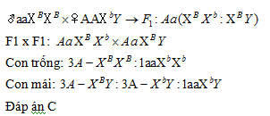 Khi tiến hành lai hai dòng chim thuần chủng khác nhau trong cùng một loài: chim trống màu đen, chim mái màu đen được thế hệ F1 đồng loạt có màu xanh da trời. cho F1 lai với nhau thì được tỷ lệ: 3 cái xanh da trời: 4 cái màu đen: 6 đực lông xanh da trời: 2 đực lông đen. Kiểu gen P phù hợp là: