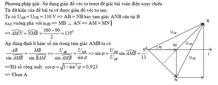 V, điện áp hai đầu mạch MB và AN vuông pha nhau. Hệ số công suất của đoạn mạch AB: