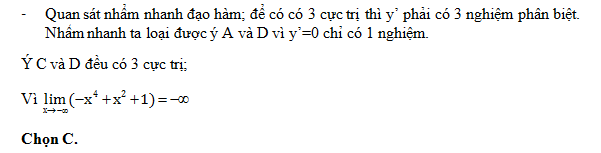 Hàm số nào sau đây có 2 điểm cực đại và 1 điểm cực tiểu: