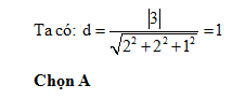 Trong không gian với hệ tọa độ Oxyz, tính khoảng cách từ O đến mặt phẳng 2x+2y+z-3 =0?