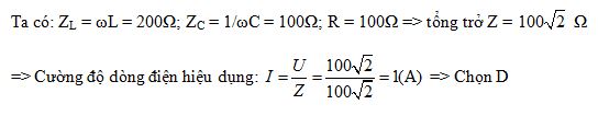 H mắc nối tiếp. Đặt vào hai đầu đoạn mạch một điện áp u=200cos100πt(V). Cường độ hiệu dụng trong mạch là.