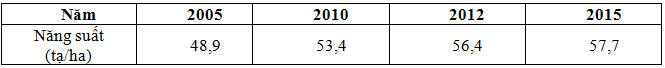 Cho bảng số liệu: DIỆN TÍCH VÀ SẢN LƯỢNG LÚA NƯỚC TA GIAI ĐOẠN 2005 – 2015 (Nguồn: Niên