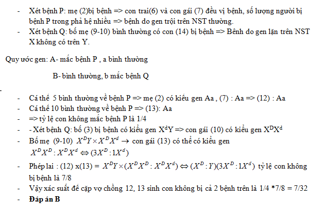 Nghiên cứu sự di truyền của bệnh P, Q bằng phương pháp phả hệ, đã có được sơ đồ sau: