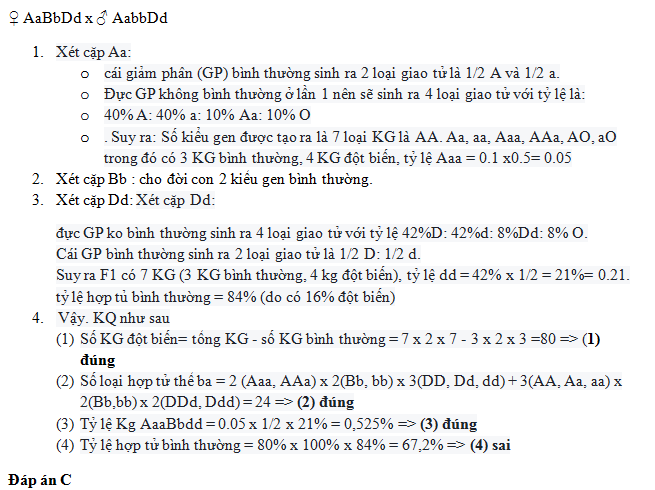 1.Theo lý thuyết, có tối đa bao nhiêu kiểu gen đột biến được hình thành ở F1 là 80