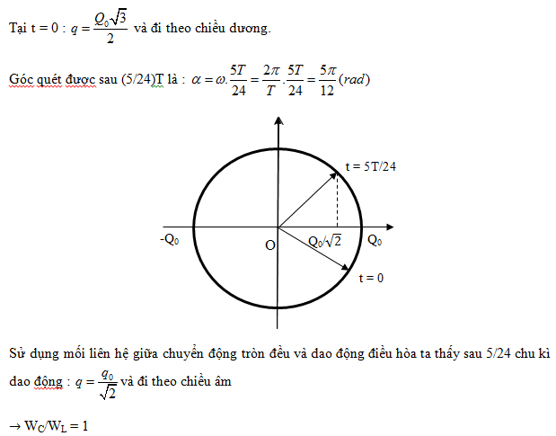 . Sau 5/24 chu kỳ dao động kể từ thời điểm ban đầu thì tỉ số giữa năng lượng điện trường và năng lượng từ trường là