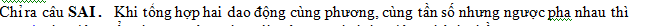 Khi tổng hợp hai dao động cùng phương, cùng tần số nhưng ngược pha nhau thìbiên độ dao động nhỏ nhất:
