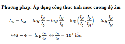 Một sóng âm truyền trong không khí . Mức cường độ âm tại điểm M và tại điểm N lần lượt là 40dB và 80dB. Cường độ âm tại N lớn hơn cường độ âm tai M