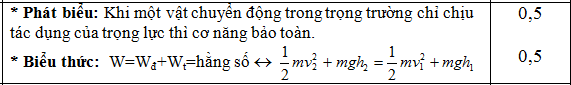 (1 điểm) Phát biểu và viết biểu thức định luật bảo toàn cơ năng cho vật chuyển động trong