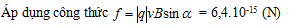 Một electron bay vào không gian có từ trường đều có cảm ứng từ B = 0,2 (T) với vận tốc ban đầu v0 = 2.105 (m/s) vuông góc với véc tơ cảm ứng từ B. Lực Lorenxơ tác dụng vào electron có độ lớn là:
