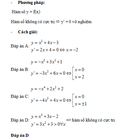 Trong các hàm số dưới đây, hàm số nào không có cực trị?