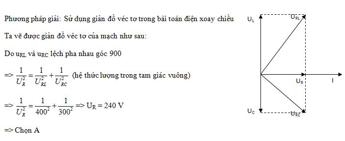 Mạch RLC mắc nối tiếp, cuộn dây cảm thuần , ULR = 400 V, URC = 300 V. Điện áp tức thời của hai đoạn mạch này lệch nhau 900. Giá trị UR là