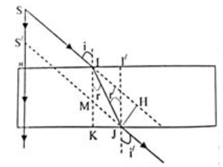 Một bản mặt song song có bề dày 10 (cm), chiết suất n = 1,5 được đặt trong không khí. Chiếu