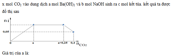 Khi nCO2 = 0,4 mol thì nkt = 0,05 mol => 0,05 = 2a + b – 0,4 => 2a + b = 0,45