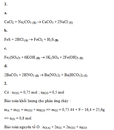 1. Xác định các chất tương ứng với các chữ cái A,B,,D,E,X,Y,Z,T và viết các phương trình phản