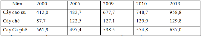 Dựa vào bảng: Diện tích gieo trồng một số cây công nghiệp lâu năm của nước ta, giai đoạn