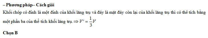 Cho khối lăng trụ ABC.A’B’C’ có thể tích là V, khi đó thể tích của khối chóp C’.ABC