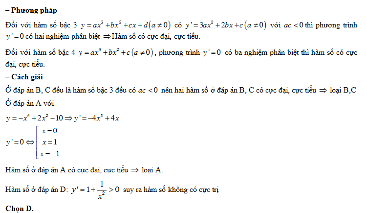 Hàm số nào sau đây không có cực đại, cực tiểu?
