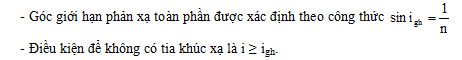 Cho một tia sáng đi từ nước (n = 4/3) ra không khí. Sự phản xạ toàn phần xảy ra khi góc