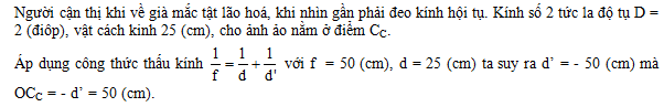 Một người cận thị về già, khi đọc sách cách mắt gần nhất 25 (cm) phải đeo kính số 2. Khoảng thấy rõ nhắn nhất của người đó là: