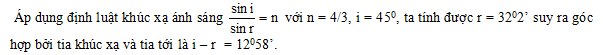 Chiếu một chùm tia sáng song song trong không khí tới mặt nước ( n = 4/3) với góc tới là 450. Góc
