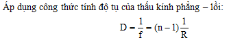 Một thấu kính mỏng, phẳng – lồi, làm bằng thuỷ tinh chiết suất n = 1,5 đặt trong không khí, biết độ tụ của kính là D = + 5 (đp). Bán kính mặt cầu lồi của thấu kính là: