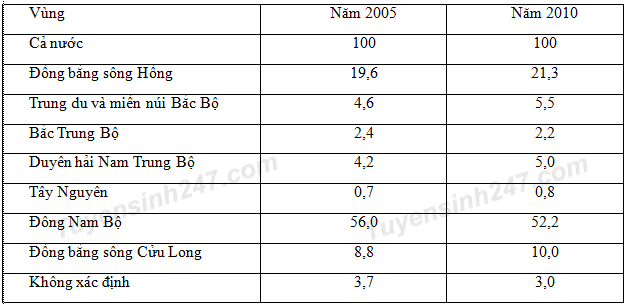 Cho bảng số liệu: Cơ cấu giá trị sản xuất công nghiệp phân theo vùng lãnh