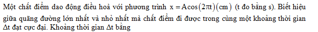 Biết hiệu giữa quãng đường lớn nhất và nhỏ nhất mà chất điểm đi được trong cùng một khoảng thời gian đạt cực đại. Khoảng thời gian = T/4 =1/4s