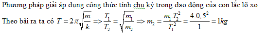 Gắn một vật khối lượng m=4kg vào một là xo lý tưởng nó dao động với chu kì T1=1s , khi gắn một vật khác khối lượng m2 vào lò xo trên , nó dao động với chu kì T2=0,5s . Khối lượng m2 bằng