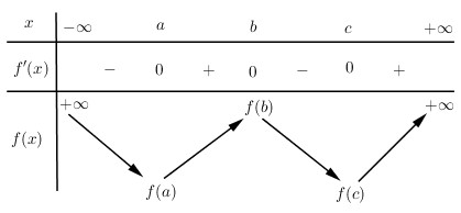 Cho hàm số \(y = f\left( x \right)\) có độ thị hàm số \(y = f'\left( x \right)\) như hình bên. Biết \(f\left( a \right) > 0\), hỏi đồ thị hàm số \(y = f\left( x \right)\) cắt trục hoành tại nhiều nhất bao nhiêu điểm?