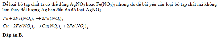 Một lượng Ag dạng bột có lẫn Fe, Cu. Để loại bỏ tạp chất mà không làm thay đổi lượng Ag ban đầu, có thể ngâm lượng Ag trên vào dung dịch gì?
