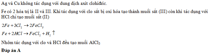 Kim loại nào sau đây khi tác dụng với khí clo và dung dịch axit clohiđric cho ra cùng một loại