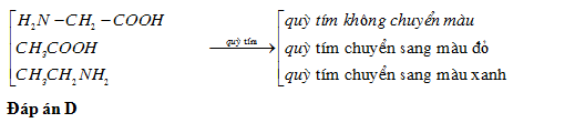 Để phân biệt 3 loại dung dịch: H2N - CH2 - COOH; CH3COOH; CH3CH2NH2 chỉ cần một thuốc thử