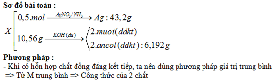 Hỗn hợp X gồm hai este đơn chức. Cho 0,5 mol X tác dụng với dung dịch AgNO3/ NH3 dư thu được 43,2