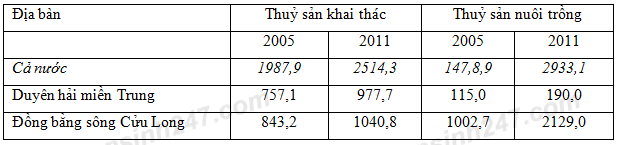 Cho bảng số liệu: Tình hình sản xuất thuỷ sản nước ta qua các năm (đơn vị nghìn