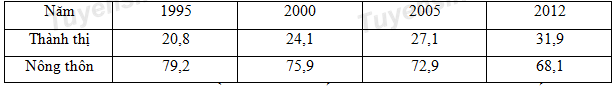 Cho bảng số liệu sau TỈ TRỌNG DÂN SỐ THÀNH THỊ VÀ NÔNG THÔNG NƯỚC TA GIAI ĐOẠN 1995-2012