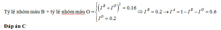 Ở người, gen quy định ba nhóm máu gồm 3 alen ; kiểu gen quy định nhóm máu A; quy định nhóm máu B; quy định nhóm máu AB; quy định nhóm máu O. Một quần thể có 3750 người, trong đó có 450 người nhóm máu B, 150 người nhóm máu O còn lại là nhóm máu A và AB. Tần số alen IA trong quần thể này là: