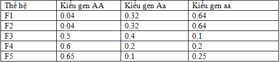 . Nghiên cứu sự thay đổi thành phần kiểu gen của quần thể qua 5 thế hệ liên tiếp thu được kết quả theo bảng sau: