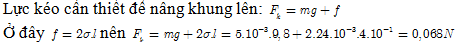 Nhúng một khung hình vuông có chiều dài mỗi cạnh là 10cm vào rượu rồi kéo lên. Tính lực tối