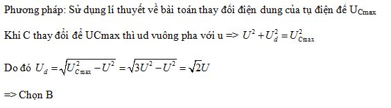Mạch xoay chiều gồm cuộn dây không thuần cảm nối tiếp với tụ điện có điện dung C biến đổi được. Đặt vào hai đầu mạch một điện áp xoay chiều có giá trị hiệu dụng U. Khi C = C0 thì điện áp hiệu dụng trên tụ đạt giá trị cực đại UCmax =