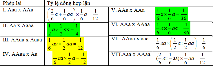 VII. AAaa x aaa VIII. Aaa x AAaa