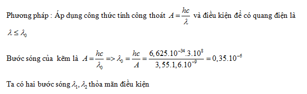 chiếu lần lượt bốn bức xạ trên vào một tấm kẽm có công thoát A = 3,55eV. Số bức xạ gây ra hiệu ứng quang điện ngoài đối với tấm kẽm là