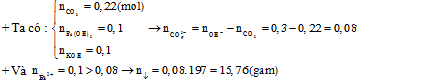 Hấp thụ hoàn toàn 4,928 lít khí CO2 (đktc) vào 100 ml dung dịch hỗn hợp chứa Ba(OH)2 1M và KOH 1M.