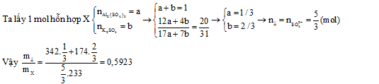 Một hỗn hợp X gồm Al2(SO4)3 và K2SO4, trong đó số nguyên tử oxi chiếm 20/31 tổng số nguyên tử