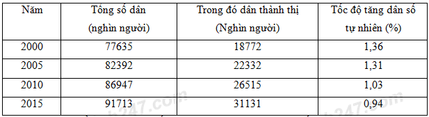 Cho bảng số liệu SỐ DÂN VÀ TỐC ĐỘ TĂNG DÂN SỐ TỰ NHIÊN CỦA NƯỚC TA QUA CÁC