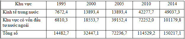 Giá trị xuất khẩu hàng hoá phân theo khu vực kinh tế ở nước ta giai đoạn 1995 – 2014